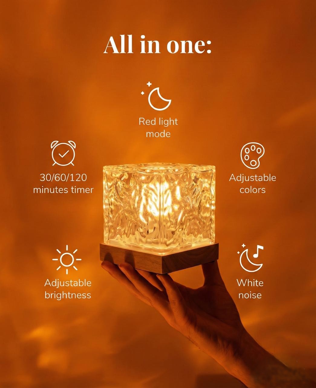 Thanks to the hypnotic ripple effects and built-in ambient soundscapes, this cube gently floods every corner with serenity—perfect for deep focus or deep rest.